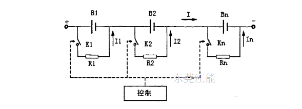 目前通用的均衡方法有耗能均衡,充電均衡和能量轉(zhuǎn)移均衡。最典型使用最廣的是耗能均衡,該方法利用發(fā)熱電阻旁路分流,原理如下圖: