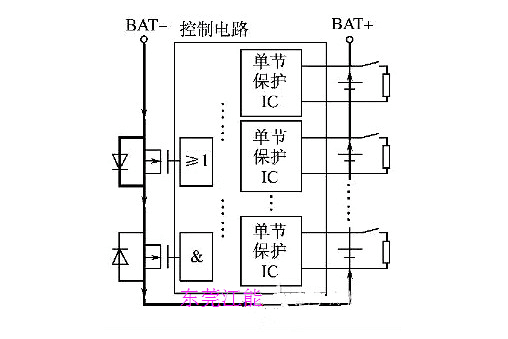 1 鋰電池組保護(hù)板均衡充電原理結(jié)構(gòu)