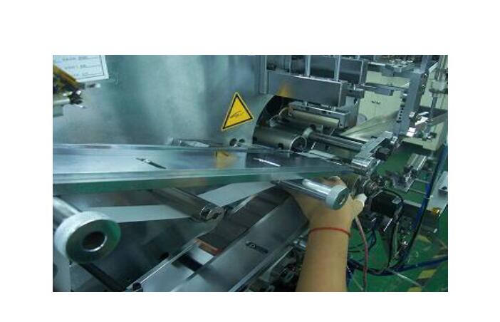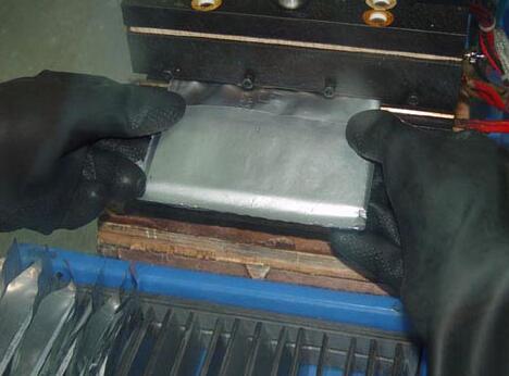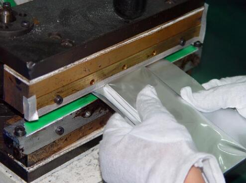 用自動折邊機裁掉電池兩邊多余的外鋁塑復合膜及折邊自動完成。