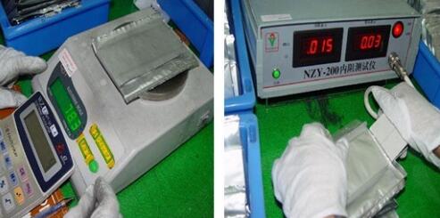 電芯達到老化期時,就可以根據(jù)客戶要求進行裝配(可以組合成很多的不同裝配方式)。組裝時,必須對該批次出庫電芯進行測電壓、內(nèi)阻的全檢方可。