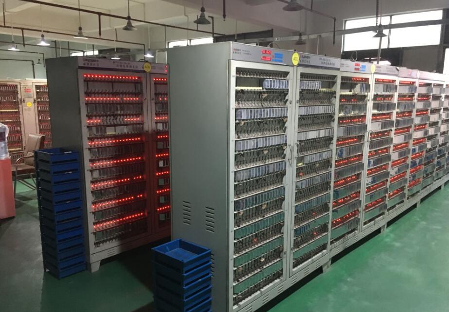 用高精度的化成分容檢測設(shè)備把電池容量分選出來歸類 ,每個電池都連接電腦并時時監(jiān)測、記錄每個電池的性能指標。