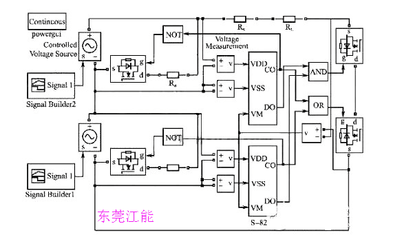 圖5 2節(jié)鋰電池串聯(lián)均充保護(hù)仿真模型